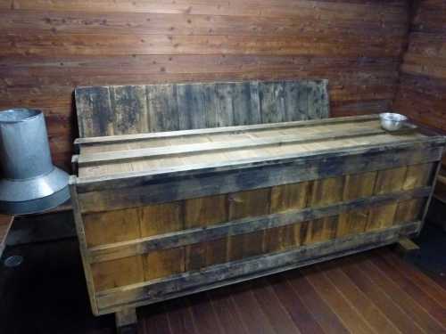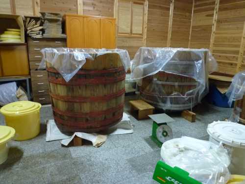 最後に、お味噌を寝かしている場所へ・・・大きな樽がありました。